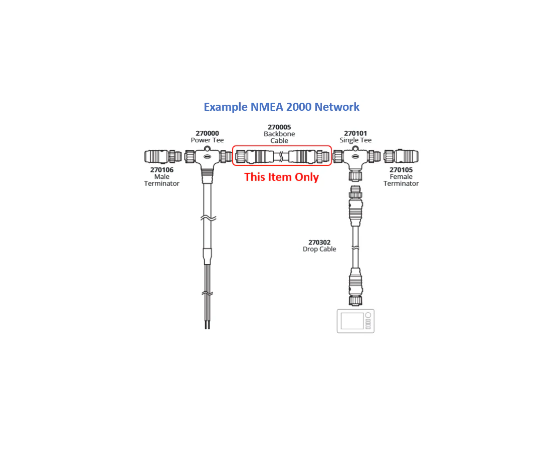 NMEA 2000 Backbone Cables extend the NMEA 2000 backbone to different areas of the boat or vehicle. The most common application is connecting Tee sets that need to be separated.