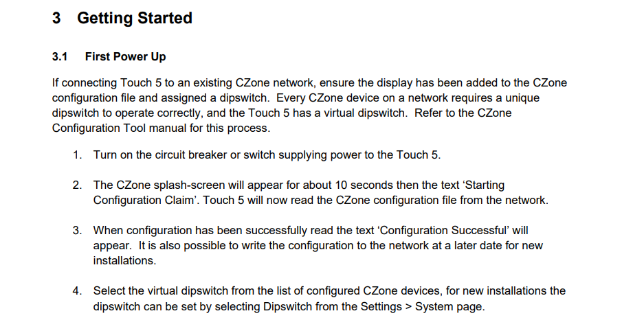 A great thing about all CZone modules is that whenever software is uploaded to the network, every CZone module will hold all of the information inside it. This means that if one of your modules needs to be replaced, you should be able to match the dip switch address of your new module to the same as the old one, plug it into the system, and the other modules in the network will take identify the new module and automatically program it. This makes changing a display or module easy, anywhere in the world without special software and internet.