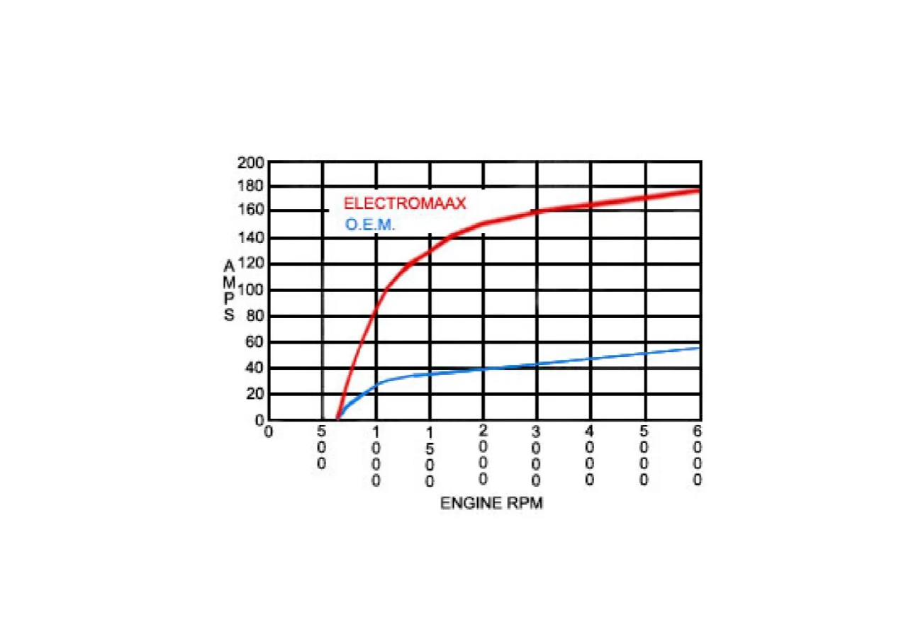 The alternator was designed from the ground up specifically for the how marine engines are used. With specialized windings the Cruiser can output higher amperages at lower RPMs without the need for large pulley ratios. This allows boaters to us the Cruiser as a generator supplement or replacement.