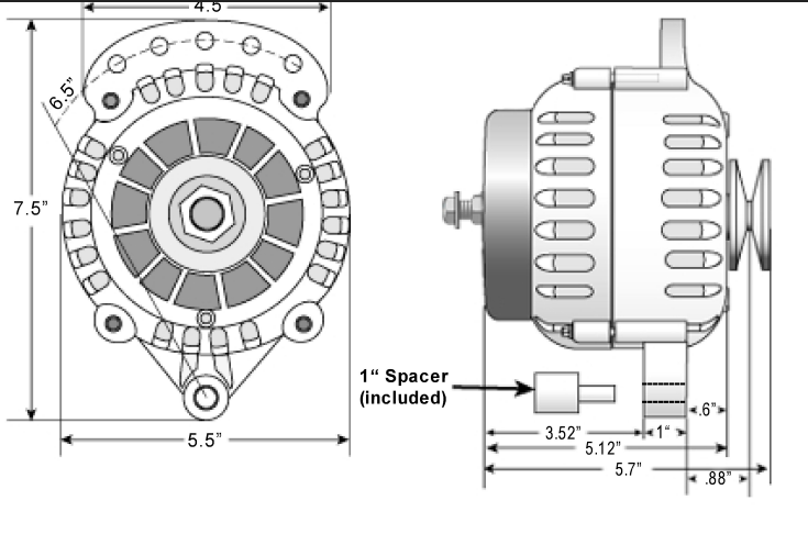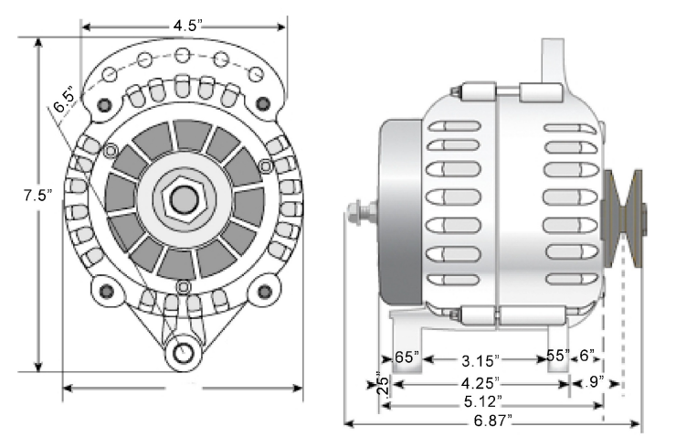 The Cruiser remote rectifier series of alternators solves this issue by having industry leading heat dissipation. With it's innovative remote rectifier design the highest heating component (the rectifier) is removed from the case of the alternator which also removes 50% of the heat. With the rectifier now removed from the housing it allowed ElectroMaax engineers to design a proper rectifier that can handle continuous high loads. The rectifier as more diodes which provides more power to your batteries. It includes a dedicated fan that mounts directly to the rectifier for further cooling.