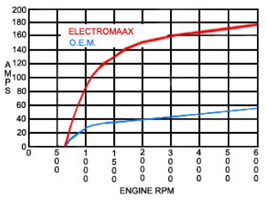 The problem with most alternators is they were designed for lead acid battery charging in the automotive industry. Lead acid commonly only accepts 25% of the amp-hour rating, so the alternators that charge them were not designed to output 100% continuously. With the introduction of lithium technology now batteries can accept nearly 100% of their amp-hour rating. Traditional alternators simply can't handle that and will either burn out or temperature compensate their output down to mundane levels.