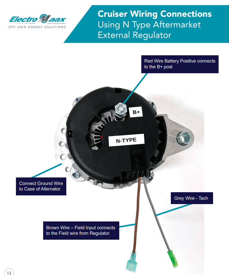 The Cruiser remote rectifier line of alternators can be wired in P-Type or N-Type giving you ultimate flexibility. Give us a call with any questions.