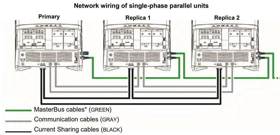This kit will allow proper communication between three units to triple the AC inverter power on a single phase 120V AC system. Not for split phase operation.